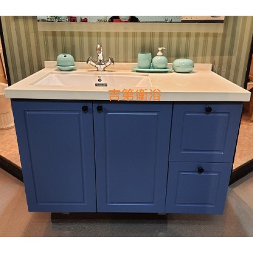 100cm進口石英石檯面+ROCA方形下崁盆+鋼琴烤漆防水浴櫃+緩衝抽屜*2+面盆龍頭